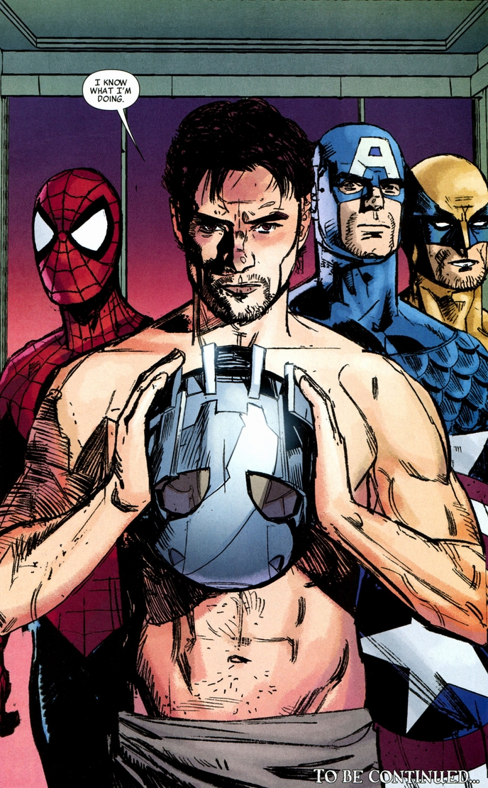 Lui ovviamente, tra una frecciatina di Wolverine e una battuta di Spider-Man, non si tira indietro e poco dopo lo ritroviamo già all’opera nelle tenebre con il suo sfolgorante costume bianco a combattere su una barca contro un armadioquattrostagioni vivente: Mr. Hyde! Alla fine della tenzone il nostro torna alla base con la testa di un Ultron (!) [il resto dell’armatura era sulla barca che ‘qualcuno’ è riuscito a portare via…].