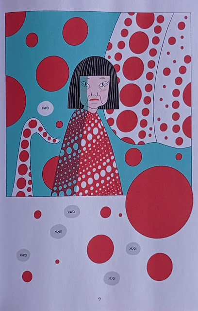 La narrazione segue Yayoi Kusama dalla sua infanzia nella provincia giapponese, dove cresce in una famiglia autoritaria, molto tradizionale e ostile, fino alla ribalta internazionale. Il suo desiderio di diventare artista non solo viene inizialmente ostacolato dai genitori, ma si scontra anche con una cultura fortemente patriarcale e repressiva come quella giapponese nel secondo dopoguerra. Eppure, Kusama non arretra: si trasferisce negli Stati Uniti per inseguire l’arte e a New York entra in contatto con l’avanguardia artistica degli anni ’60, diventa parte integrante della scena pop e performativa, si confronta con artisti come Andy Warhol, Lucio Fontana e Georgia O'Keeffe (sua prima mentore, a distanza, grazie a uno scambio epistolare). Tuttavia, come il fumetto ci racconta, il suo percorso non è lineare né privo di traumi.